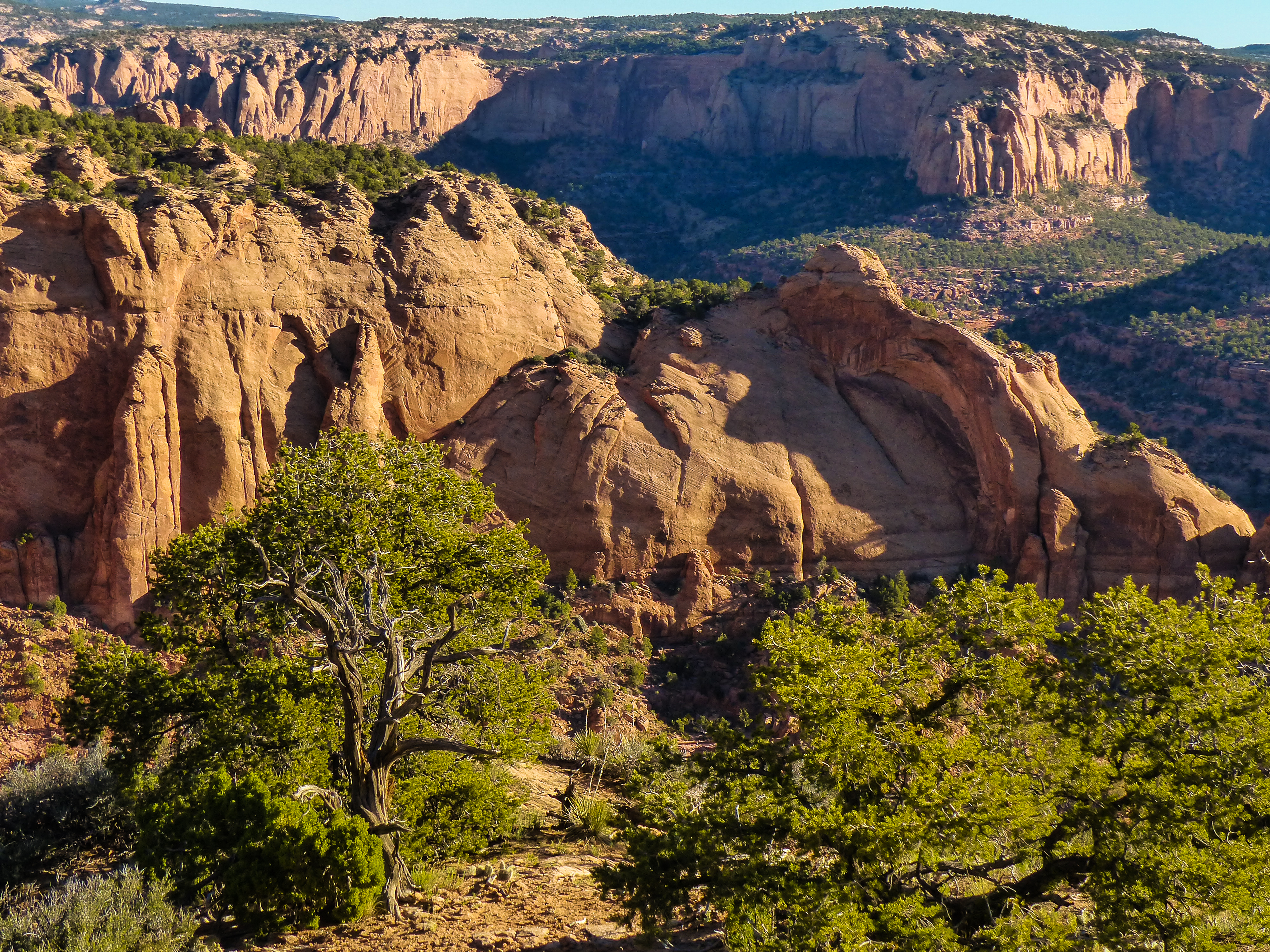 Finally made the backpack to Keet Seel; years after I had 1st learnt of this amazing location. After much hand-wringing over the permits, transferring the permits, attending the orientation …we were on the long road that lead to the original TH and down to the ruins! YAY! We met up at the Keet Seel Parking area at 7:00 am MST (Navajo Nation is on MST – 1 hr ahead of AZ Time) and finally started walking down the road towards the 1st of many ” you need a permit to go past this point” barriers! The actual trail down the canyon is 7 miles and a good 1.5 miles of old and not so old road walking thrown in for a good measure. Getting closer to Tsegi Canyon, we are greeted with some sun-kissed views of the sandstone cliffs and the shimmering lazy meanders of the creek.